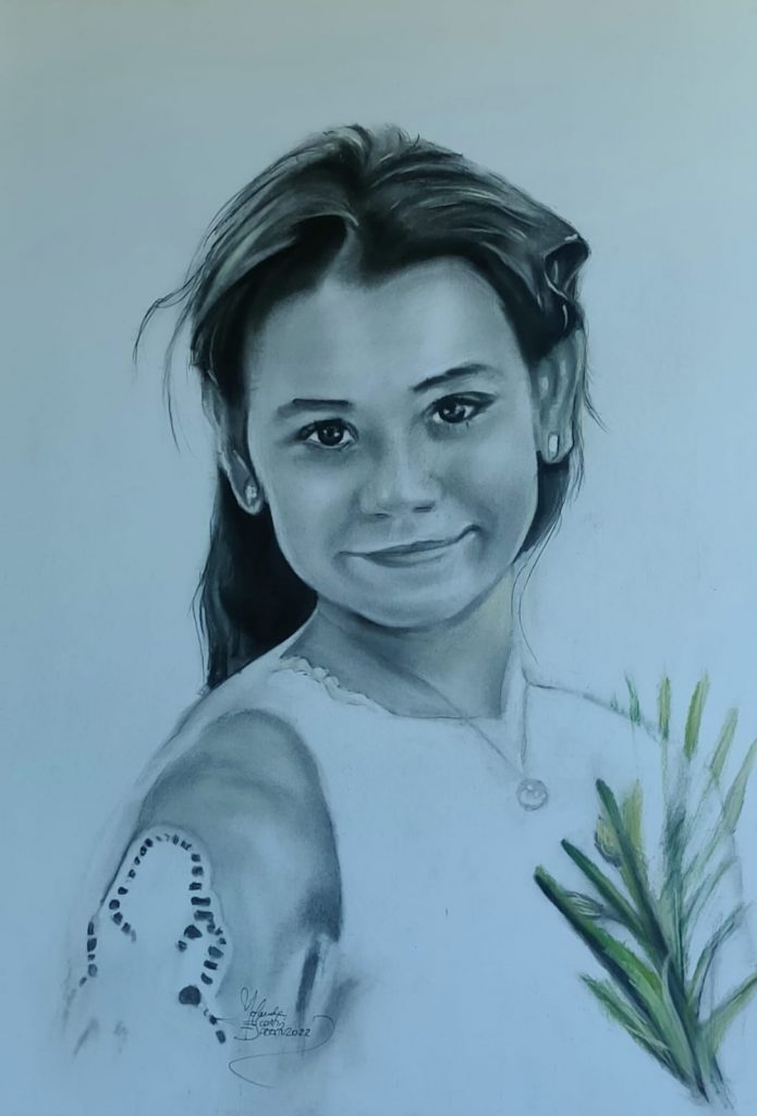 - Jovencita pintada en carboncillo y lápiz